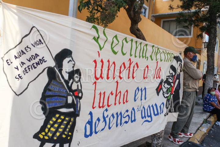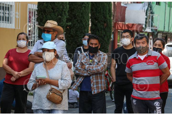 Vecinos de la colonia Santo Domingo durante la asamblea por escasez de agua.