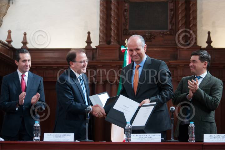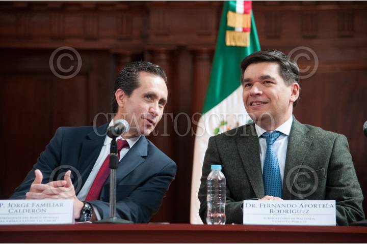 CIUDAD DE MÉXICO, 05FEBRERO2016.- Jorge Familiar Calderón, Vicepresidente del Banco Mundial para América Latina y el Caribe y Fernando Aportela Rodríguez, subsecretario de Hacienda y Crédito Público, durante la firma del préstamo del Banco Mundial a la Financiera Nacional de Desarrollo Agropecuario, Rural, Forestal y Pesquero (FND), para la expansión de las finanzas rurales. FOTO: DIEGO SIMÓN SÁNCHEZ /CUARTOSCURO.COM
