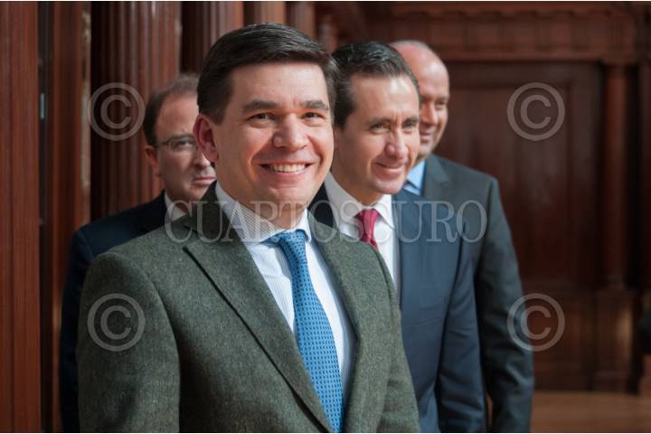 CIUDAD DE MÉXICO, 05FEBRERO2016.- Jorge Familiar Calderón, Vicepresidente del Banco Mundial para América Latina y el Caribe; Fernando Aportela Rodríguez, subsecretario de Hacienda y Crédito Público, y Juan Carlos Cortés García, Director General de la FND, durante la firma del préstamo del Banco Mundial a la Financiera Nacional de Desarrollo Agropecuario, Rural, Forestal y Pesquero (FND), para la expansión de las finanzas rurales. FOTO: DIEGO SIMÓN SÁNCHEZ /CUARTOSCURO.COM