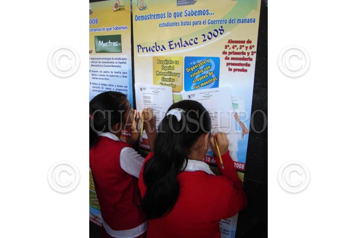 CHILPANCINGO, GUERRERO, 02MARZO2008.- Aspecto general de la prueba "Enlace 2008" que les fue practicada a alumnos de la primaria "Jose Maria Morelos y Pavon" en el zocalo de la ciudad capital. FOTO: OSCAR ALVARADO/CUARTOSCURO.COM