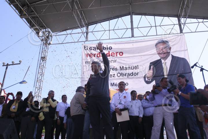 TEOLOYUCAN, ESTADO DE MÉXICO, 03FEBRERO2012.- Andrés Manuel López Obrador, precandidato de la izquierda a la Presidencia de la República, encabezó un mitin político en este municipio, como parte de su precampaña. FOTO: ISAAC ESQUIVEL/CUARTOSCURO.COM