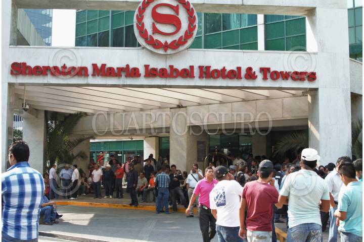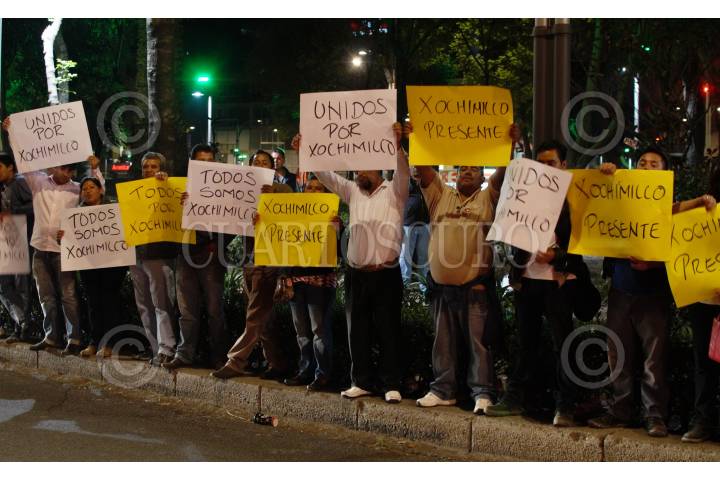 MÉXICO, D.F., 21FEBRERO2015.- Militantes del PRD de la delegación Xochimilco protestan con pancartas a las afueras del Hotel María Isabel, en donde las diferentes tribus del PRD están reunidos para la votación de las candidaturas delegacionales. FOTO: MARÍA JOSÉ MARTÍNEZ / CUARTOSCURO.COM