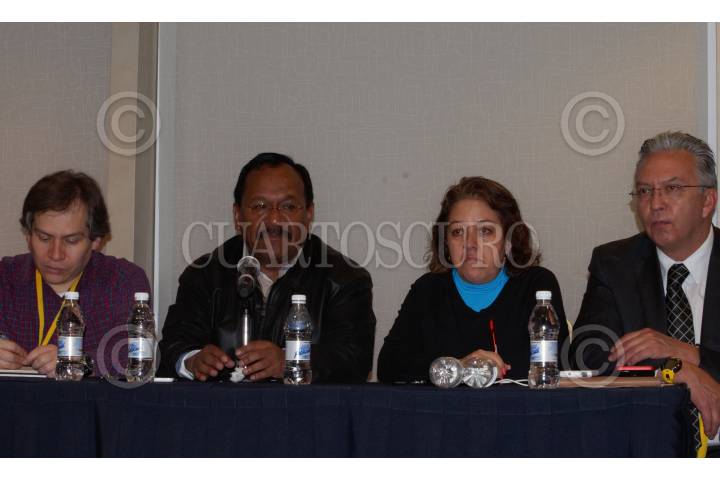 MÉXICO, D.F., 21FEBRERO2015.- Alejandro Sánchez Camacho, secretario general del PRD DF, ofreció una conferencia en donde motivó a los asistentes a que no se retiren hasta que el pleno se reúna. Manuel Oropeza, Alejandro Sánchez Camacho, Mara Iliana Cruz Pastrana, Enrique Vargas Anaya, en orden respectivo. FOTO: MARÍA JOSÉ MARTÍNEZ / CUARTOSCURO.COM