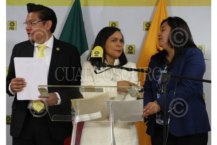 CIUDAD DE MÉXICO, 04AGOSTO2016.- Beatriz Mojica, secretario general del PRD, dio conferencia conjunta con el diputado Juan Fernando Rubio, en donde hablaron acerca de la situación de contaminación del Río Sonora y Bacanuchi. Aseguraron que el agua de dichos ríos no es potable y exigieron a las autoridades que tomen cartas en el asunto. FOTO: MARÍA JOSÉ MARTÍNEZ /CUARTOSCURO.COM