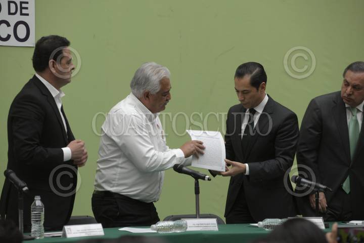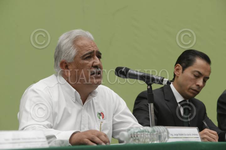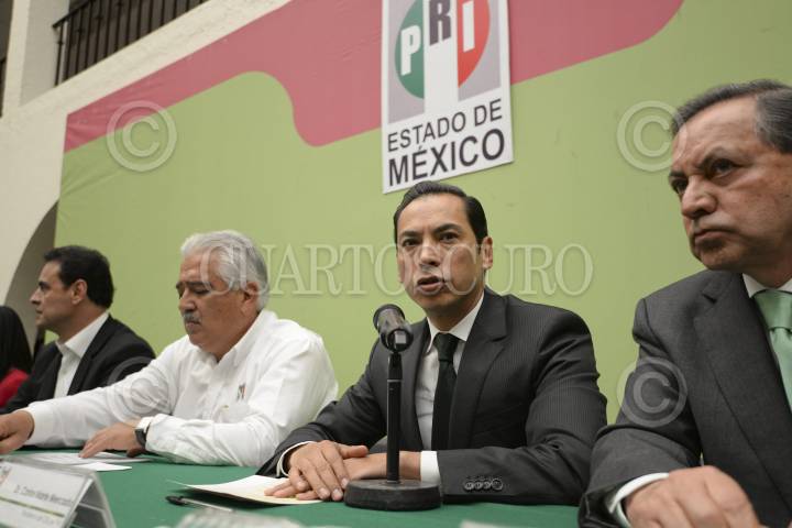 TOLUCA, ESTADO DE MÉXICO, 17ENERO2017.- El Dirigente del PRI en el Estado de México, Carlos Iriarte Mercado, acompañado por Jorge Rubén Escajera Jiménez, presidente de la Comisión Nacional de Proceso Internos del partido y el Senador Ismael Hernández Deras, Delegado General del CEN, dieron a conocer la convocatoria para la elección del candidato a gobernador del Edomex, la convocatoria señala que el 27 de enero se realizará la jornada de pre registro de aspirantes. FOTO: ARTEMIO GUERRA BAZ / CUARTOSCURO.COM
