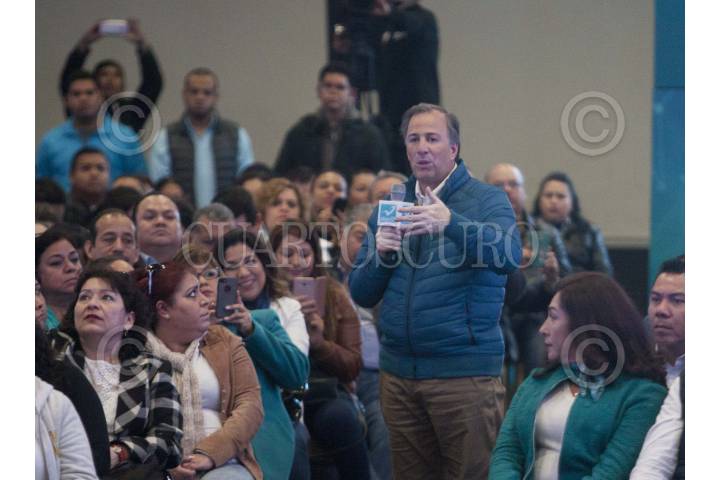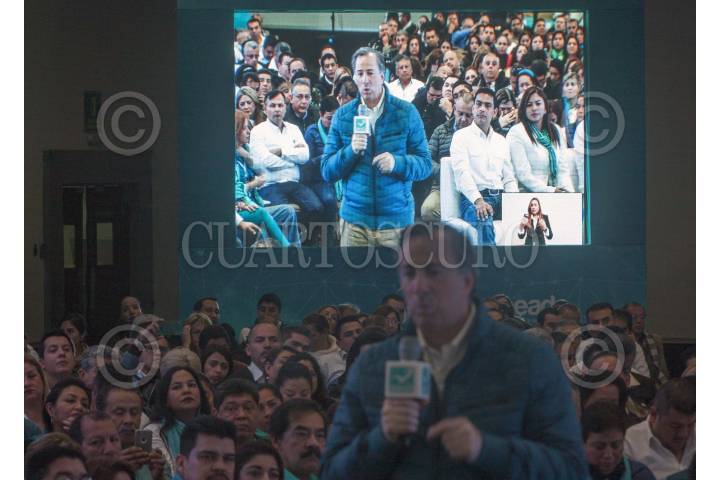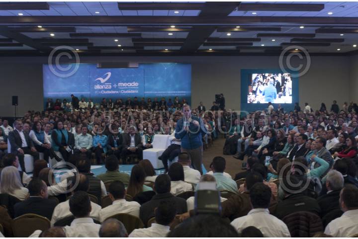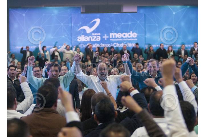 MONTERREY, NUEVO LEÓN, 08FEBRERO2018.- José Antonio Meade precandiato presidencial por la coalición Todos Por México, continuó su gira en la entidad y se reunió con militantes del Partido Nueva Alianza en un evento en CINTERMEX, en donde acudieron maestros integrantes del PANAL procedentes de Nuevo León, Guanajuate, Aguascalientes, Coahuila, Tamaulipas, Querétaro, San Luis Potosí y Zacatecas. FOTO: GABRIELA PÉREZ MONTIEL /CUARTOSCURO.COM