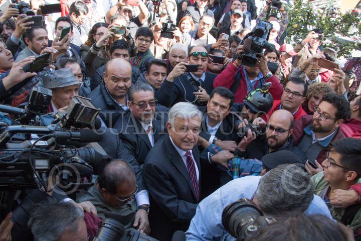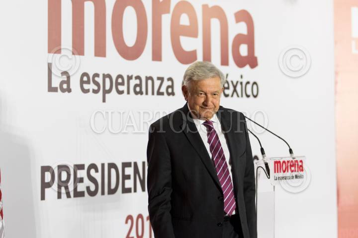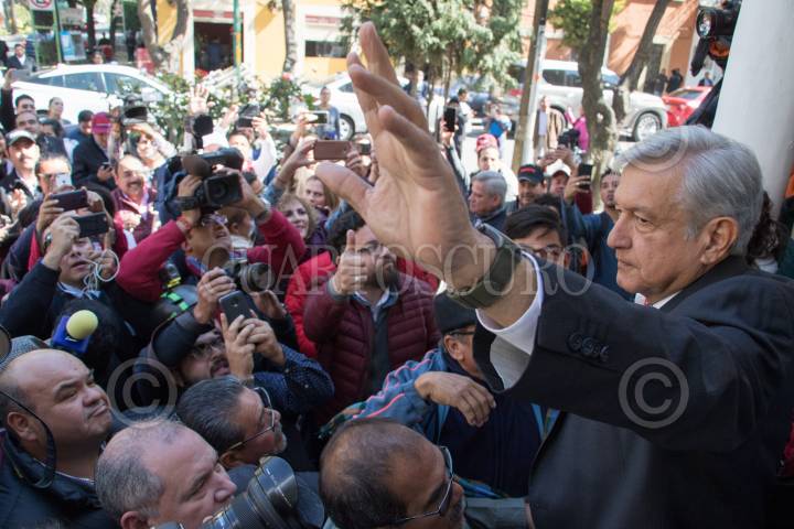 CIUDAD DE MÉXICO, 12DICIEMBRE2017.- Andrés Manuel López Obrador, se registró ante la comisión de elecciones de MORENA como precandidato a la presidencia de la república. FOTO: SAÚL LÓPEZ /CUARTOSCURO.COM