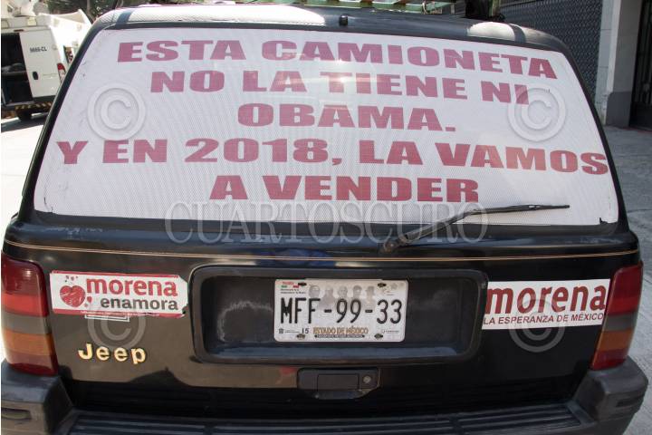 CIUDAD DE MÉXICO, 12DICIEMBRE2017.- Andrés Manuel López Obrador, se registró ante la comisión de elecciones de MORENA como precandidato a la presidencia de la república. En la imagen una camioneta rotulada con frases de AMLO. FOTO: SAÚL LÓPEZ /CUARTOSCURO.COM