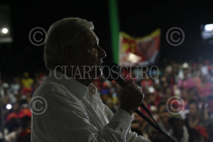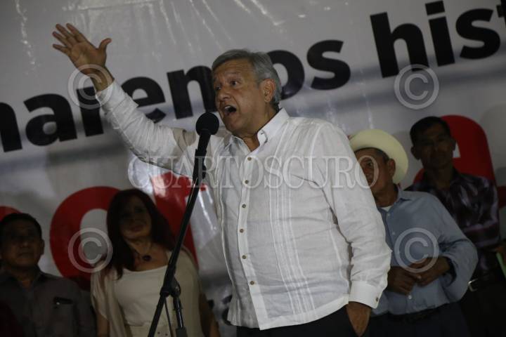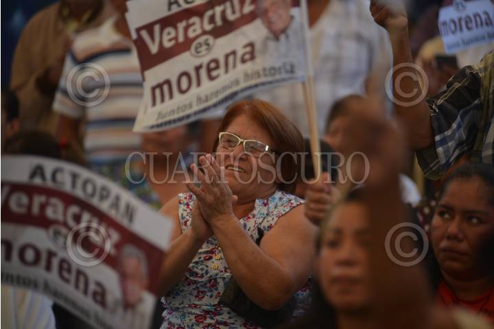 ACTOPAN, VERACRUZ, 08ENERO2018.- Andrés Manuel López Obrador, precandidato presidencial por MORENA visitó el municipio acompañado del precandidato a la gobernatura Cuitláhuac García Jiménez además de Ricardo Ahued Bardahuil y Rocío Nahle, en su mensaje aseguró que acabará con la corrupción en el país además de la rehabilitación de 6 refinerías y la creación de otras dos. FOTO: ALBERTO ROA /CUARTOSCURO.COM