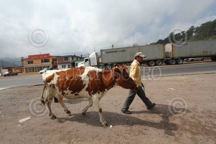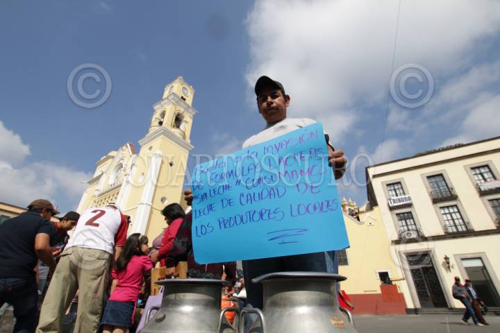 LA JOYA, VERACRUZ, 05FEBRERO2018.- Productores de leche bloquearon la carretera Xalapa-Perote a la altura de “La Joya” exigiendo controlar la importación de las fórmulas sintéticas, además de exigir incremento al precio de la leche. Los inconformes regalaron leche fresca frente al Palacio de Gobierno como parte de su protesta por mejores condiciones para su producto. FOTO: ALBERTO ROA /CUARTOSCURO.COM