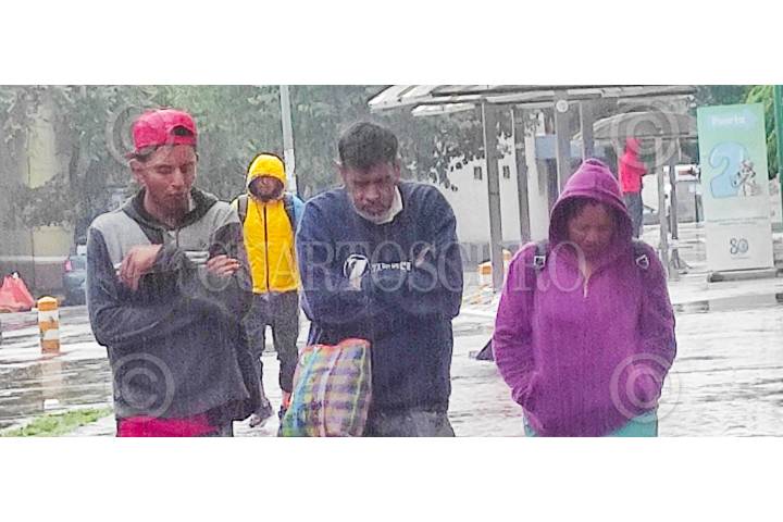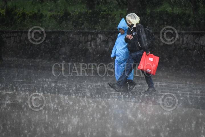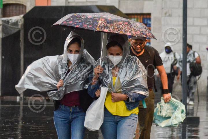 Capitalinos se protegen de las precipitaciones registradas durante esta tarde.