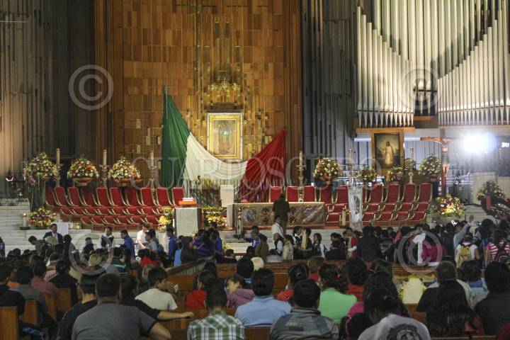 MEXICO, D.F., 12DICIEMBRE2013.- La noche de ayer miles de peregrinos, procedentes de varias partes del país, arribaron a la basílica de Guadalupe debido a los festejos que se celebran en su honor cada año. Los feligreses realizan mandas para conseguir el favor de la virgen o como pago por los favores recibidos. En el interior de la basílica se cantan himnos y canciones por parte de los creyentes en honor a la virgen. FOTO: DAVID POLO /CUARTOSCURO.COM