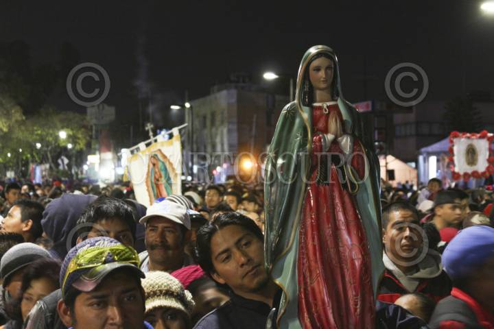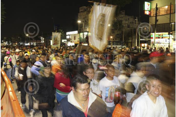 MEXICO, D.F., 12DICIEMBRE2013.- La noche de ayer miles de peregrinos, procedentes de varias partes del país, arribaron a la basílica de Guadalupe debido a los festejos que se celebran en su honor cada año. Los feligreses acuden realizando mandas para conseguir el favor de la virgen o como pago por los favores recibidos. En su peregrinación, los creyentes traen cargando imágenes de la virgen para bendecirlas en este recinto. FOTO: DAVID POLO /CUARTOSCURO.COM