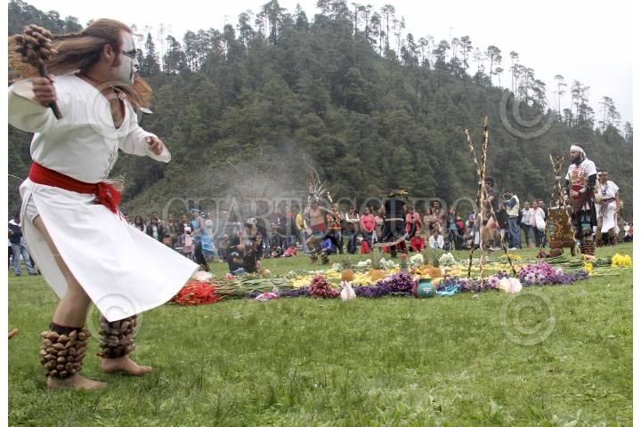 HUITZALAC, MORELOS, 07JUNIO2014.- Como cada año, la Escuela de Trabajo Social de la Universidad Autónoma del Estado de Morelos (UAEM), realizó la Fiesta del Agua Zempoala, Fiestas de la Identidad en su edición 14. Durante la ceremonia llevaron a cabo un homenaje al Doctor Alejandro Chao Barona, quien fuera fundador de esta celebración y quen fue asesinado el pasado 5 de mayo. Un grupo de danza prehispánica realizó el ritual a los cuatro puntos cardinales. FOTO: PATRICIA MORALES /CUARTOSCURO.COM