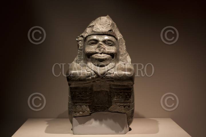 MÉXICO, D.F., 29MARZO2012.- El jade "la piedra preciosa", une a México y China en una exposición de 220 obras antiguas, procedentes del Museo del Palacio de Pekín, y de varios museos y zonas arqueológicas de México. La exposición abrirá este fin de semana en el Museo Nacional de Antropología. En China y Mesoaméricana antiguas, el jade fue considerado una piedra preciosa, incluso mas preciada que el oro o la plata en Occidente. La muestra que ha sido nombrada como "Piedras del Cielo, Civilizaciones del jade" y en ella se observan piezas de las civilizaciones olmeca, maya y mexica y por parte de china la mayoría de estas pertenecen a el periodo Neolítico. En la imagen se observa una pieza que representa a Xiuhtecuhtli perteciente a la cultura mexica y la cual fue elaborada de jadeita. FOTO: MOISÉS PABLO /CUARTOSCURO.COM