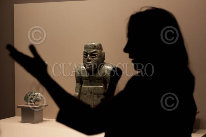 MÉXICO, D.F., 29MARZO2012.- El jade "la piedra preciosa", une a México y China en una exposición de 220 obras antiguas, procedentes del Museo del Palacio de Pekín, y de varios museos y zonas arqueológicas de México. La exposición abrirá este fin de semana en el Museo Nacional de Antropología. En China y Mesoaméricana antiguas, el jade fue considerado una piedra preciosa, incluso mas preciada que el oro o la plata en Occidente. La muestra que ha sido nombrada como "Piedras del Cielo, Civilizaciones del jade" y en ella se observan piezas de las civilizaciones olmeca, maya y mexica y por parte de china la mayoría de estas pertenecen a el periodo Neolítico. FOTO: MOISÉS PABLO /CUARTOSCURO.COM