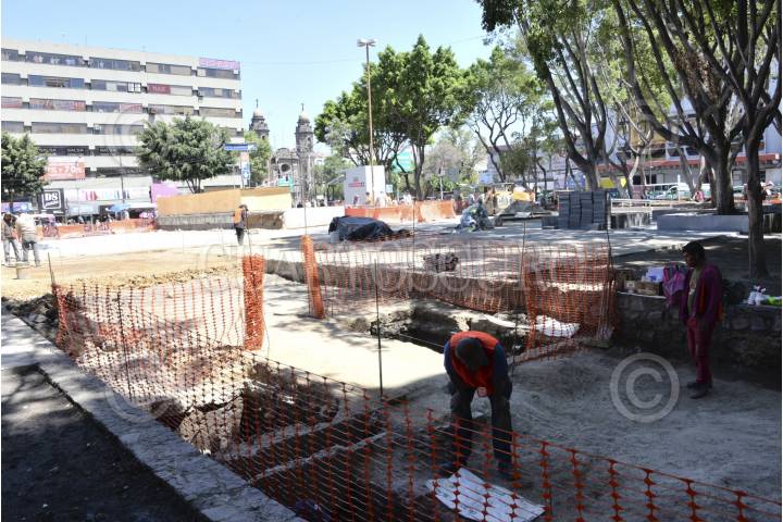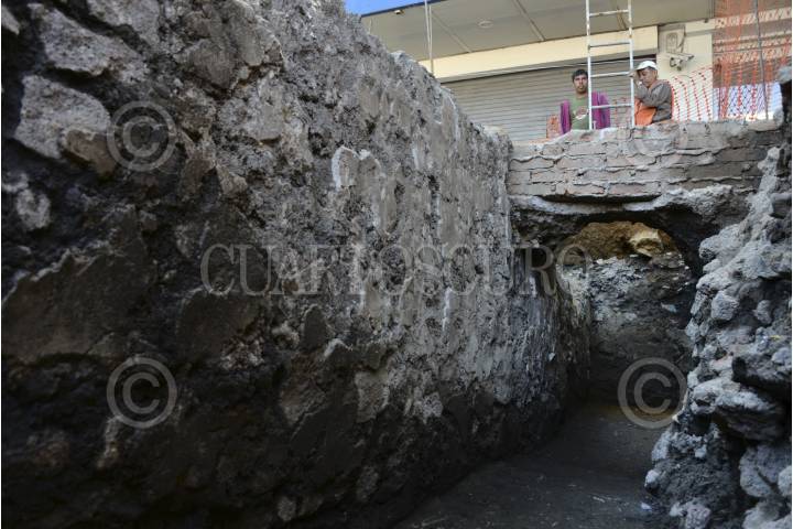 CIUDAD DE MÉXICO, 11JULIO2017.- Arqueólogos del Instituto Nacional de Antropología e Historia (INAH) descubrieron a centímetros de la Plaza Pino Suárez restos de una subestructura prehispánica que debió ser la delimitación del espacio sagrado del calpulli de Cuezcontitlán. La arqueóloga Donají Montero Guzmán, de la Dirección de Salvamento Arqueológico (DSA) del INAH, dio que hace poco más de un mes se procedió al rescate de estos vestigios arquitectónicos que quedaron expuestos con la apertura de dos calas, durante los trabajos del proyecto de rehabilitación integral que realiza en el lugar. FOTO: MELITÓN TAPÍA /INAH/CUARTOSCURO.COM