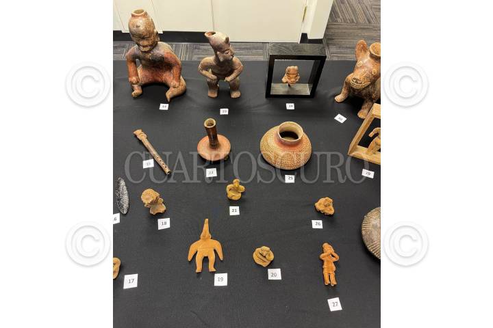 TLAXCALA, TLAXCALA, 13AGOSTO 2024.- La Secretaría de Relaciones Exteriores de México, junto con la Secretaría de Cultura y el INAH, recuperaron 32 piezas arqueológicas entregadas al Consulado de México en Portland, Oregón. De las obras, 31 son monumentos arqueológicos manufacturados entre los años 300 a.C. y 1521 d.C., mientras que la restante es un bien histórico. Especialistas del INAH realizarán los dictámenes correspondientes tras la inspección física de las piezas. FOTO: INAH/CUARTOSCURO.COM