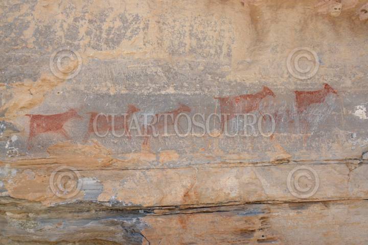 ALLENDE, CHIHUAHUA, 13MAYO2010.- Arqueólogos del Instituto Nacional de Antropología e Historia (INAH), encontraron un dibujo de más de 500 años de antigüedad en un abrigo rocoso y se atribuye a grupos chisos y tobosos, extintos durante la colonia. La imagen prehispánica pudo haber sido creada entre los siglos XII al XV y es una de las mejor conservadas que se han encontrado hasta el momento en esa entidad. FOTO: FRANCISCO MENDIOLA/INAH/CUARTOSCURO.COM