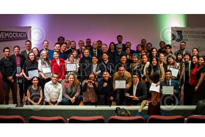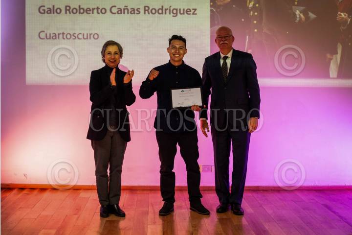CIUDAD DE MÉXICO, 08NOVIEMBRE2024.- Galo Cañas, fotógrafo de Cuartoscuro, fue galardonado con el Premio Alemán de Periodismo Walter Reuter en la categoría de Foto y Caricatura por su imagen “Cienfuegos amigo”, de la cual se desprenden varias lecturas de política mexicana, al capturar la tensión y simbolismo en un acto oficial. FOTO: MÓNICA LOZA/CUARTOSCURO.COM