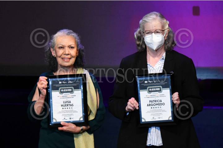 CIUDAD DE MÉXICO, 14SEPTIEMBRE2024.- Luisa Huertas, actriz y Patricia Argomedo, maestra en Antropología, recibieron los reconocimientos "Luisa Josefina Hernández” a la docencia teatral, durante la ceremonia de clausura y premiación del 31° Festival Internacional de Teatro Universitario (FITU) realizada en el Teatro Juan Ruiz de Alarcón del Centro Cultural Universitario (CCU) de la Universidad Nacional Autónoma de México (UNAM). FOTO: MARIO JASSO/CUARTOSCURO.COM