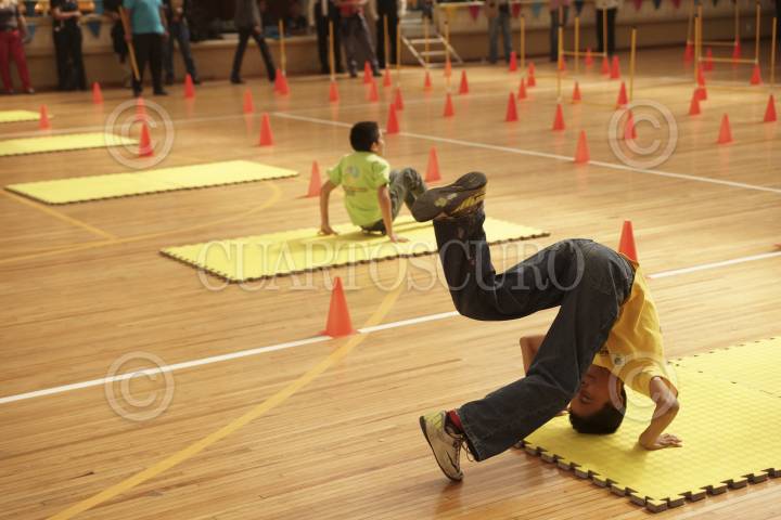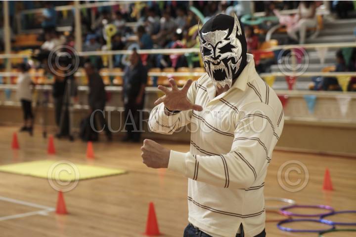 MÉXICO, D.F., 07AGOSTO2013.- En el deportivo Azcapotzalco se llevó a cabo la clausura del curso de verano de la Secretaría de Seguridad Pública en donde los niños que formaron parte compitieron en un rally en el que los equipos participantes fueron premiados con una medalla a manos del secretario de seguridad pública, Armando Ahued Ortega. El evento fue amenizado por luchadores de la triple AAA como Osiris y por la orquesta sinfónica de la Secretaría de Seguridad Pública. FOTO: ALEJANDRO NEYRA /CUARTOSCURO.COM