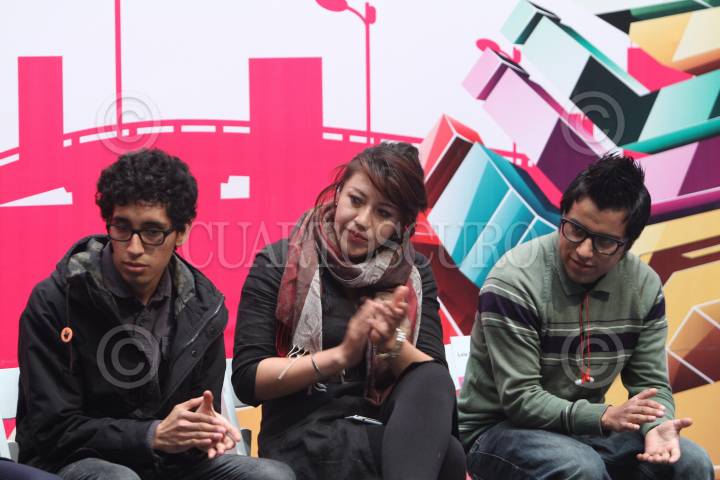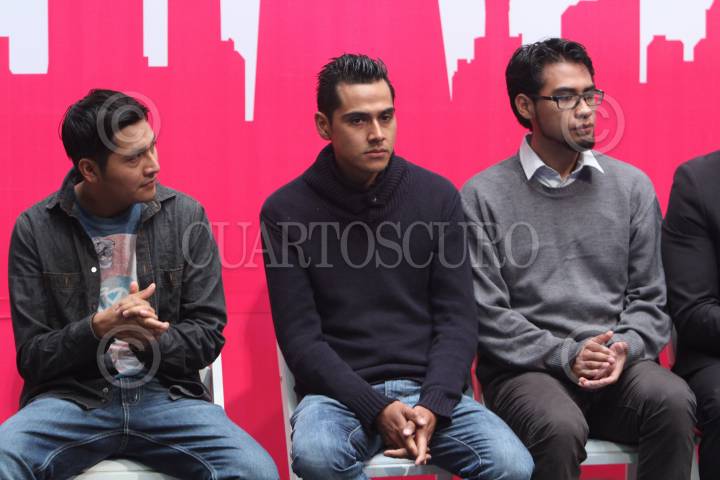 MÉXICO, D.F.,23MARZO2015.- José Estrada, Fernando Luna y Johana Plascencia, ganadores en la categoría, creatividad del mensaje, en la segunda etapa del concurso "HidroARTE", organizado por el gobierno del Distrito Federal. FOTO: ISABEL MATEOS /CUARTOSCURO.COM
