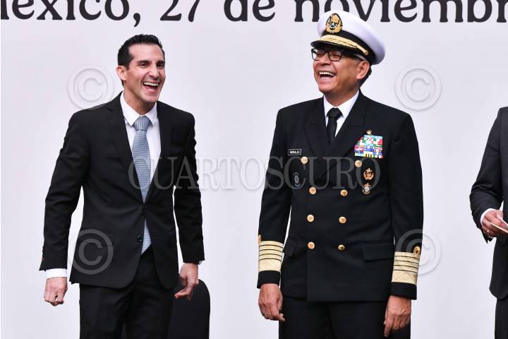 CIUDAD DE MÉXICO, 27NOVIEMBRE2024.- Rommel Pacheco, titular de la CONADE, junto a Raymundo Morales, secretario de Marina, durante la ceremonia de entrega del Premio Nacional de Deportes, realizada en Palacio Nacional. FOTO: MARIO JASSO/CUARTOSCURO.COM