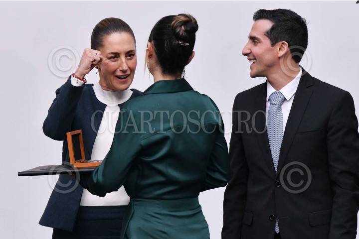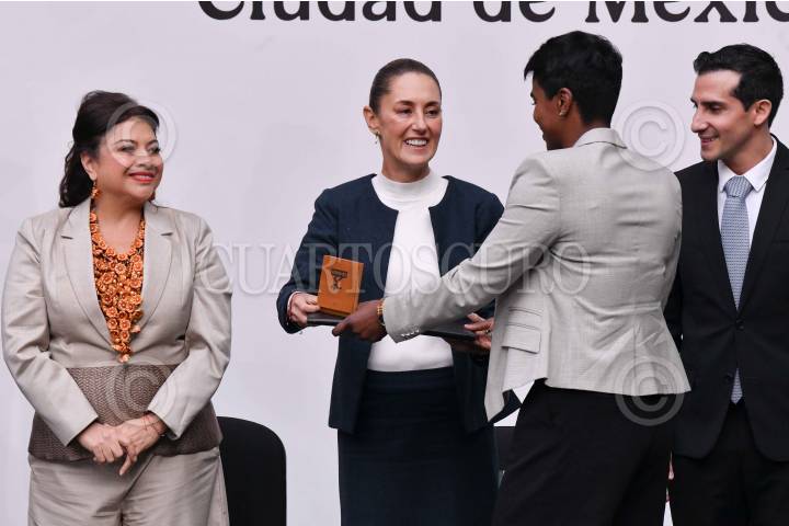 CIUDAD DE MÉXICO, 27NOVIEMBRE2024.- Claudia Sheinbaum, presidenta de México, entrega el Premio Nacional de Deportes a Katia Itzel García, árbitra de futbol profesional, ceremonia realizada en Palacio Nacional. FOTO: MARIO JASSO/CUARTOSCURO.COM