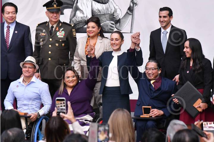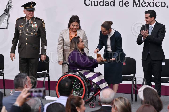 CIUDAD DE MÉXICO, 27NOVIEMBRE2024.- Claudia Sheinbaum, presidenta de México, entrega el Premio Nacional de Deportes a Gloria Zarza, medallista paralímpica, ceremonia realizada en Palacio Nacional. FOTO: MARIO JASSO/CUARTOSCURO.COM