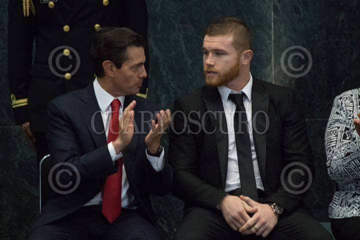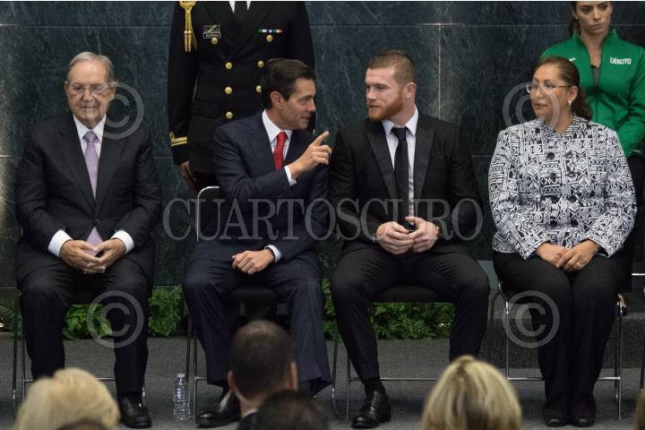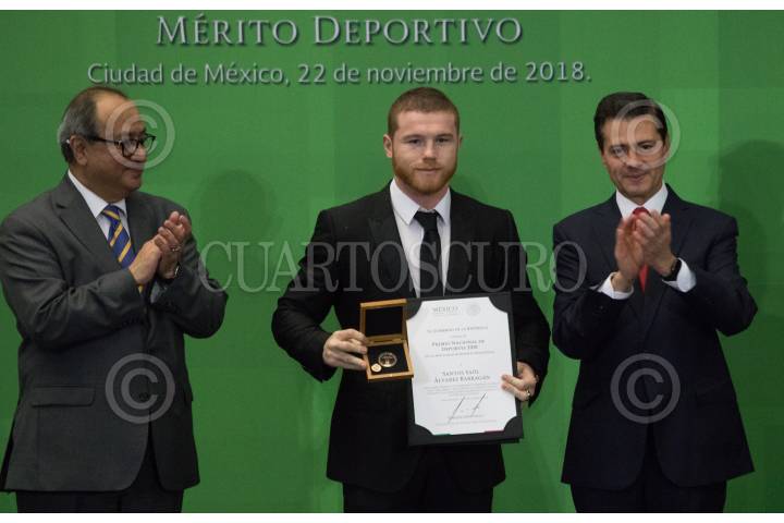 CIUDAD DE MÉXICO, 22NOVIEMBRE2018.- El boxeador Saúl "Canelo" Álvarez recibió el Premio Nacional del Deporte en una ceremonia encabezada por Enrique Peña Nieto, Presidente de México, en la residencia oficial de Los Pinos. FOTO: MOISÉS PABLO /CUARTOSCURO.COM