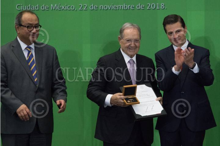 CIUDAD DE MÉXICO, 22NOVIEMBRE2018.- El empresario Olegario Vázquez Raña recibió el Premio Nacional del Deporte en la categoría por actuación y trayectoria destacada en el deporte mexicano, en una ceremonia encabezada por Enrique Peña Nieto, Presidente de México, en la residencia oficial de Los Pinos. FOTO: MOISÉS PABLO /CUARTOSCURO.COM