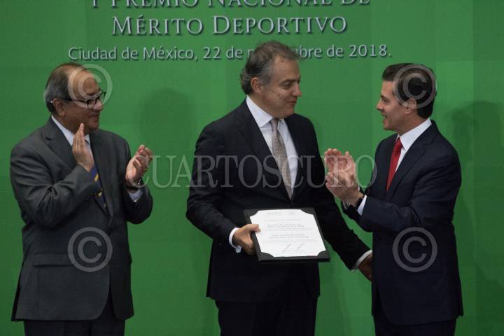 CIUDAD DE MÉXICO, 22NOVIEMBRE2018.- Salvador Ramiro Quirarte Villaseñor recibió el Premio Nacional del Deporte en la categoría de impulso de la práctica de los deportes en una ceremonia encabezada por Enrique Peña Nieto, Presidente de México, en la residencia oficial de Los Pinos. FOTO: MOISÉS PABLO /CUARTOSCURO.COM