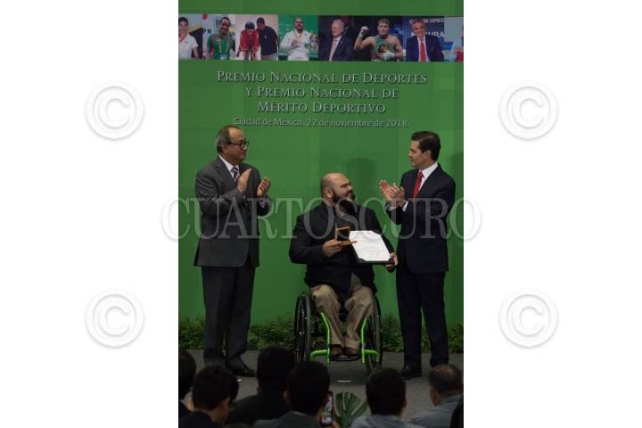 CIUDAD DE MÉXICO, 22NOVIEMBRE2018.- El atleta paralímpico José de Jesús Castillo Castillo recibió el Premio Nacional del Deporte en una ceremonia encabezada por Enrique Peña Nieto, Presidente de México, en la residencia oficial de Los Pinos. FOTO: MOISÉS PABLO /CUARTOSCURO.COM