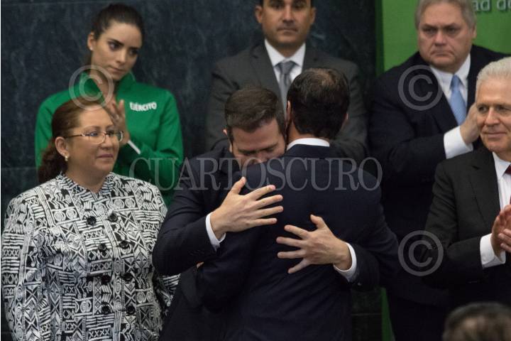 CIUDAD DE MÉXICO, 22NOVIEMBRE2018.- Alfredo Castillo Cervantes, director de la Conade, abraza a Enrique Peña Nieto, Presidente de México, tras agradecerle por los diez años en los que trabajo junto a él, durante la entrega del Premio Nacional de Deportes y Premio Nacional de Mérito Deportivo, en la residencia oficial de Los Pinos. FOTO: MOISÉS PABLO /CUARTOSCURO.COM