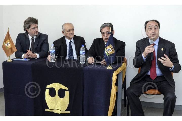 MÉXICO, D.F., 15OCTUBRE2015.- Previo al recorrido por el nuevo edificio de la Facultad de Química de la UNAM, el premio Nobel Mario Molina, ofreció una conferencia en las instalaciones del edificio, acompañado del director de la Facultad de Química, Jorge Vázquez Ramos. FOTO: CUARTOSCURO.COM