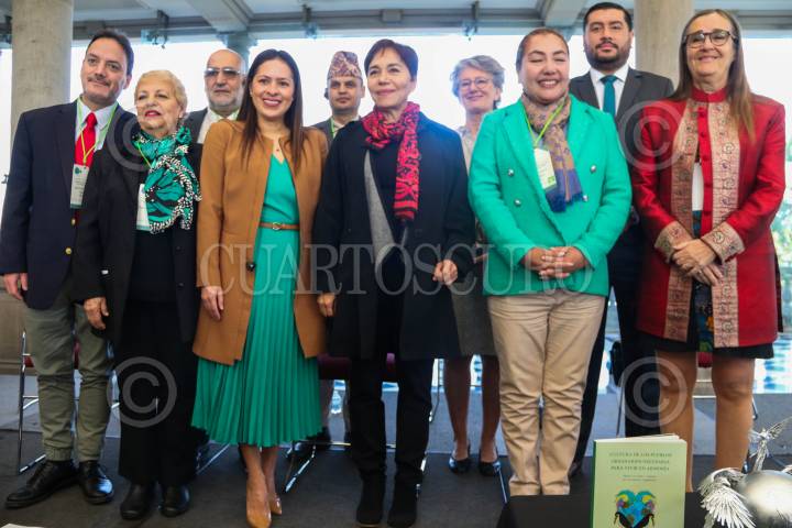 CIUDAD DE MÉXICO. 18DICIEMBRE2024.- Está mañana en el Museo Nacional del Castillo de Chapultepec, se realizó la entrega del Premio al Mérito Ambiental, otorgado por la Federación de Partidos Verdes de las Américas (FPVA), a Alicia Bárcenas, quien no acudió y en su lugar Marina Robles, lo recibió y agradeció la distinción a esta organización Ambiental este reconocimiento. Karen Quiroz líder del PVEM encabezó el evento. FOTO: VICTORIA VALTIERRA/CUARTOSCURO.COM