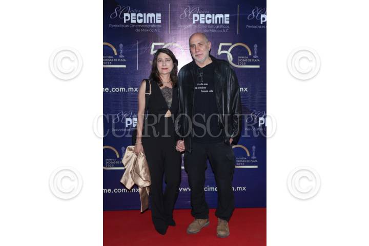 CIUDAD DE MÉXICO, 29ABRIL2025. Guillermo Arriaga y su esposa a su paso por la alfombra roja de la 50 entrega de “Las Diosas de Plata” por parte de la asociación de Periodistas Cinematográficos de México (PECIME), realizado en el CCT1. FOTO: EDGAR NEGRETE LIRA/CUARTOSCURO.COM