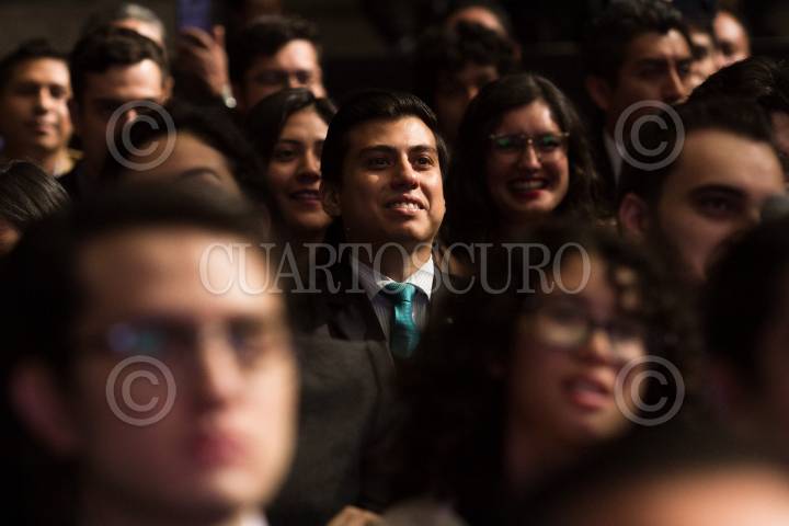 CIUDAD DE MÉXICO, 13SEPTIEMBRE2018.- Jóvenes premiados en la entrega del Premio Santander a la Innovación Empresarial, en el Palacio de Minería. FOTO: MOISÉS PABLO /CUARTOSCURO.COM
