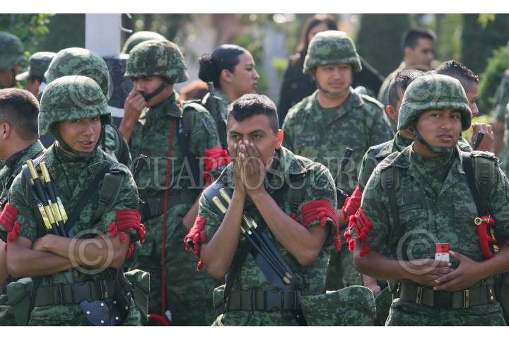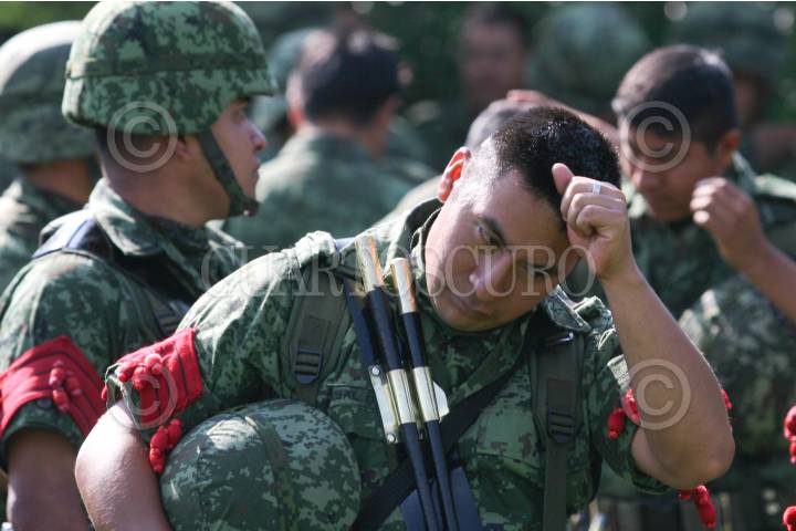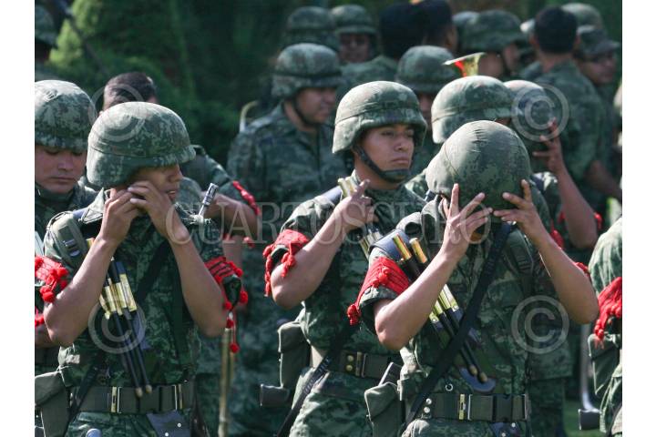 MÉXICO, D.F., 21JUNIO2010.- Integrantes de la Secretaria de la Defensa Nacional momentos antes del inicio de la ceremonia de recepción de banderas históricas realizado en el campo marte. FOTO: SAÚL LÓPEZ/CUARTOSCURO.COM