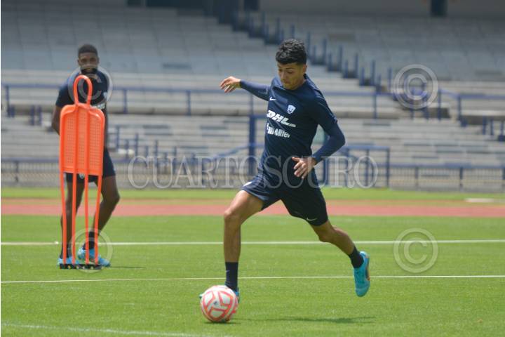 Jorge Antonio Ruvalcaba, mediocampista de los Pumas, durante el entrenamiento de esta tarde previo al arranque de la Liga MX Apertura 2022 en este fin de semana.