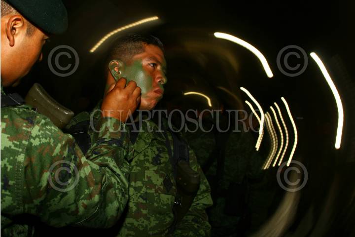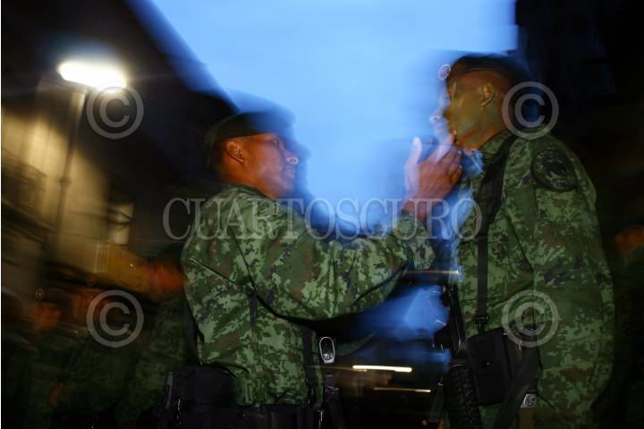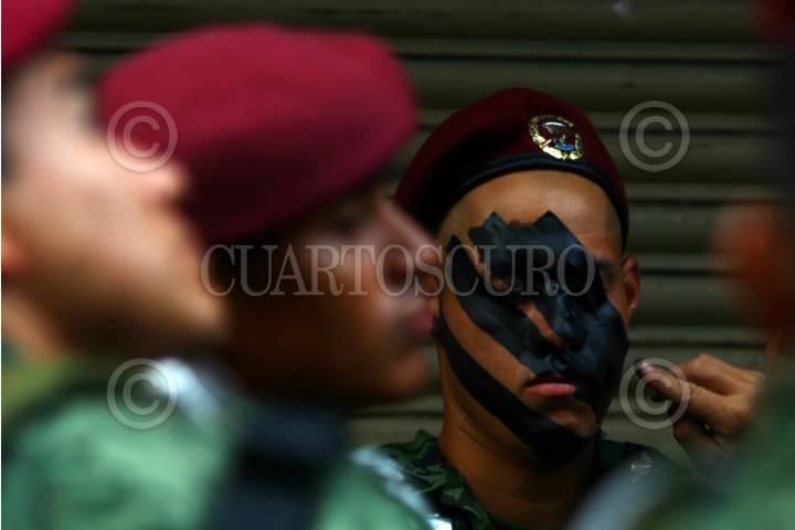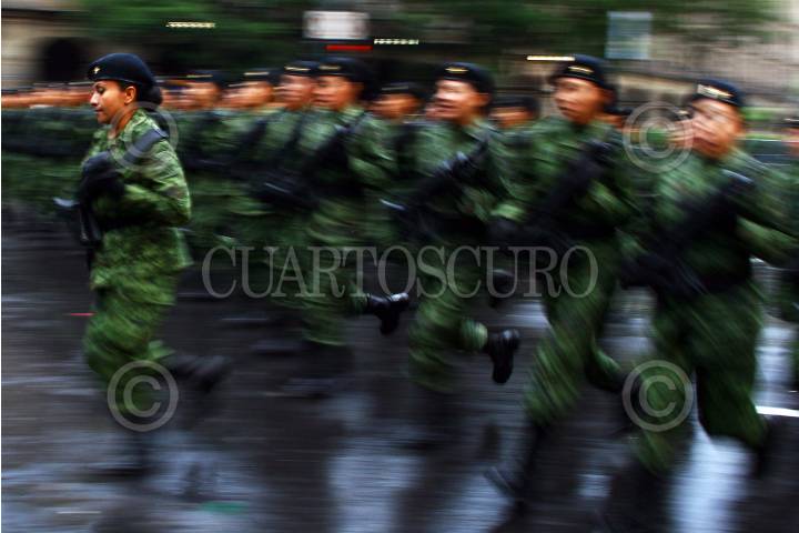 MÉXICO, D.F., 16SEPTIEMBRE2009.- Elementos del Ejercito Mexicano se preparan en calles aledañas al Centro Historico, previo al desfile por el 199 aniversario del inicio de la lucha de Independencia. FOTO: SÁSHENKA GUTIÉRREZ/CUARTOSCURO.COM