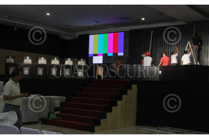 CHETUMAL, QUINTANA ROO, 04ABRIL2011.- Dos escenarios se preparan para realizar el día mañana el proceso de cambio de Gobierno estatal, donde Roberto Borge Angulo tomara protesta como nuevo gobierno constitucional que dejara Felix González Canto. Ante tal situación obreros trabajan a marcha forzada en el salón Bellavista y Centro de Convenciones. FOTO: MARCO POLO GUZMÁN HERNÁNDEZ/CUARTOSCURO.COM