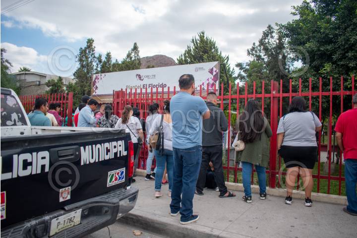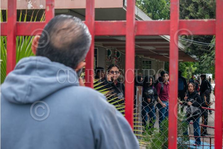 TIJUANA, BAJA CALIFORNIA, 20SEPTIEMBRE2023.- Fuerte movilización policiaca se registró esta mañana en las instalaciones de la Preparatoria Cecyte Plantel Florido, esto debido al reporte que indicaba que un joven amenazó con realizar disparos al interior del plantel educativo. Agentes de la Policia Municipal y Fuerza Estatal, realizaron un operativo en el plantel que incluyó la revisión de mochilas y la localización del joven implicado para entrevistarlo. Ante la preocupación de padres y madres de familia y docentes, las clases fueron suspendidas en el turno matutino y los alumnos pudieron retirarse a su hogar. La situación se reportó controlada. FOTO: CUARTOSCURO.COM