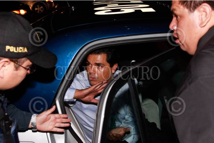 MÉXICO, D.F., 20OCTUBRE2009.- Dos supuestos funcionarios de la Secretaria de Educación Pública, que conducían en estado de ebriedad sobre avenida Cuauhtemoc a la altura de Obrero Mundial en la colonia Narvarte, casi arrollan a un motociclista quien salio ileso del percance pero cuando les dijo que le pagaran los daños causados a su vehículo estos les respondieron de forma prepotente tratando de intimidarlo al dárselas de influyentes. Al lugar acudieron policías del sector que primero subieron a la patrulla a un sujeto de nombre Jóse de Jesús N. Najera, por que los insulto, después llegaron otros compañeros de estos individuos, quienes según llegaron a un arreglo con el afectado, los uniformados lo bajaron de la patrulla y dejaron que se subiera a su camioneta de placas PWE-56-71 del estado de Morelos, ya que solo iba a proceder la remisión de esta a el corralón. FOTO: MOISÉS PABLO/CUARTOSCURO.COM