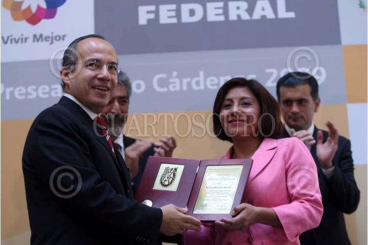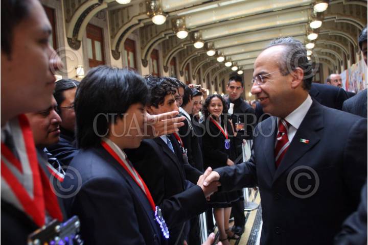MÉXICO, D.F., 03JULIO2009.- Felipe Calderón Hinojosa, presidente de México, durante la ceremonia de entrega de la presea "Lázaro Cardenas 2009", que tuvo lugar en el salon Tesorería del Palacio Nacional. FOTO: ALFREDO GUERRERO/CUARTOSCURO.COM