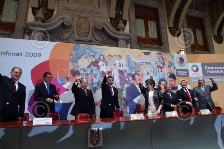 CIUDAD DE MÉXICO, 29AGOSTO2019.- El secretario general de la Universidad, Leonardo Lomelí Vanegas, acompañado de Bernardo Quintana Isaac, presidente del Consejo de Administración de Ingenieros Civiles Asociados (ICA), entregaron las preseas “Ingeniero Bernardo Quintana Arrioja”, destacaron la importancia de enaltecer el trabajo comunitario de los jóvenes ante un mundo con un creciente individualismo y en el que enfrentan un entorno social y económico más complejo. Los galardonados fueron América Sarahí Espinosa Cruz, Alberto Olvera Trejo, Julieta Sepúlveda Sánchez, David Alberto Díaz de Sandy Galán, Luis Gerardo Martínez Hernández, Nataly Aldana Díaz, Karen Mondragón Huerta, Yunuen Sandra Márquez López y Eduardo Salif Luna Ávila. FOTO: UNAM /CUARTOSCURO.COM