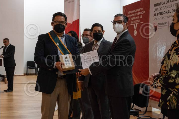 Oswaldo Pinedo Barrios, secretario de salud en representación del gobernador del estado David Monreal Ávila, realizó la entrega de preseas "Miguel Hidalgo" a las y los trabajadores de diversas aéreas del sector salud de Zacatecas por su labor en atención del Covid-19.