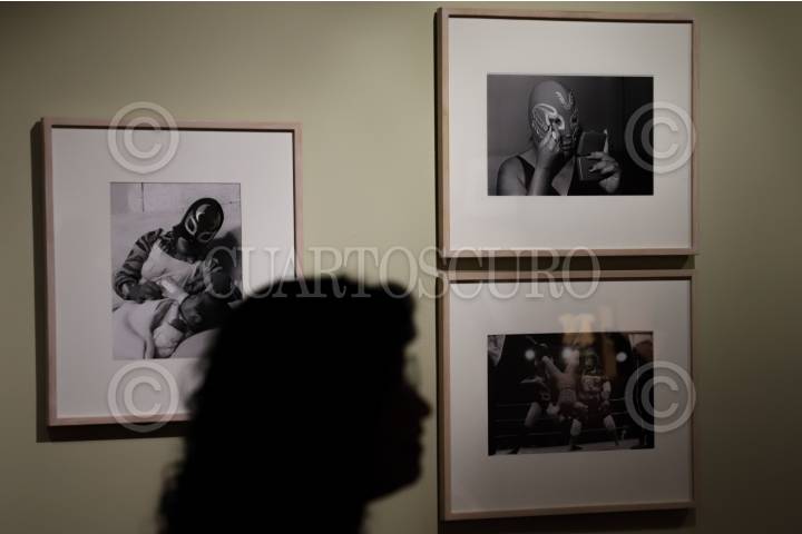 CIUDAD DE MÉXICO, 05SEPTIEMBRE2024.- Una persona pasa frente a fotografías de Lourdes Grobet, que forman parte de la exposición "Presencia Infinita". FOTO: DANIEL AUGUSTO/ CUARTOSCURO.COM