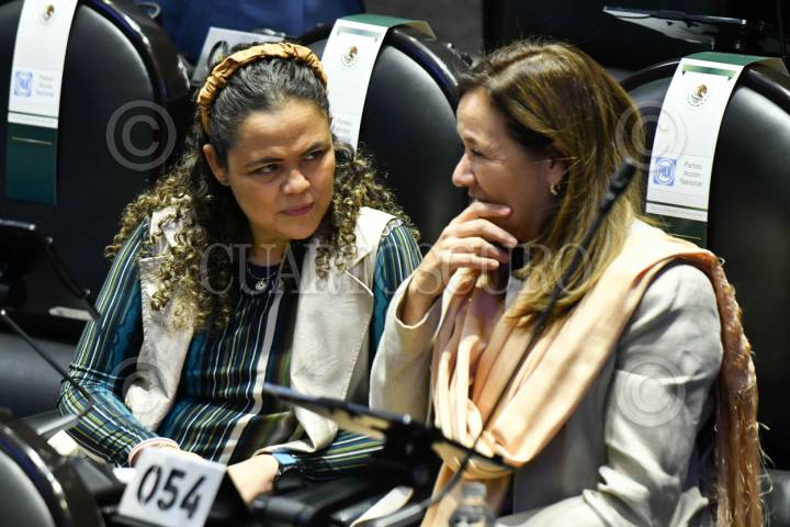 CIUDAD DE MÉXICO, 13FEBRERO2024.- Mariana Gómez del Campo, y Margarita Zavala, diputadas del PAN, durante la sesión ordinaria de la Cámara de Diputados. FOTO: MARIO JASSO/CUARTOSCURO.COM